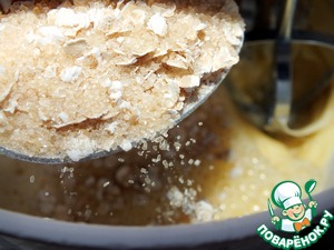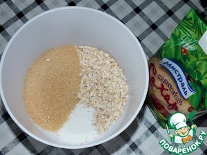 Смешать коричневый сахар, овсяные хлопья, ванилин, соль и разрыхлитель