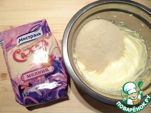 Хорошо взбиваю миксером сливочное масло комнатной температуры (около двух минут), добавляю коричневый сахар (я добавляла мелкий сахар), снова взбиваю массу около минуты.