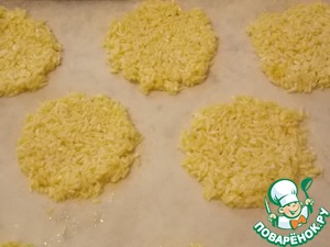 В чаше смешать кокос, сахар от "Мистраль", желтки и ванилин. Противень застелить пекарской бумагой. Чайной ложкой положить кокосовую массу на противень, придавая круглую форму, толщиной примерно 0,5 см.
