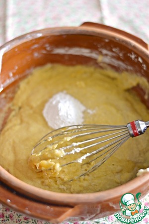Влить растительное масло и всыпать разрылитель, снова размешать - венчиком или миксером.