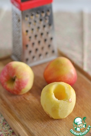 Готовим начинку: яблоки чистим от кожуры и семян, натираем на терке.
