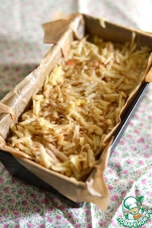 Подготовить форму для выпечки. Можно брать круглую (диаметр - около 24 см), а можно прямоугольную (размер - около 10 на 25 см). В первом случае пирог будет ниже, чем во втором.