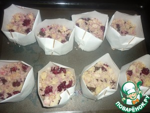 После чего можно выкладывать тесто в формочки (примерно в 2 см), утрамбовываем слегка. Ставим в разогретый до 180 градусов духовой шкаф на 15-20 минут.