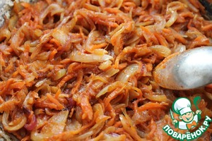 луковицы нарезать перьями, морковь тонкими брусочками, болгарский перец кубиком, обжарить на растительном масле до полуготовности, добавить томатную пасту и жарить 1 минуту. Снять с огня