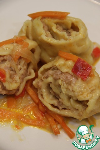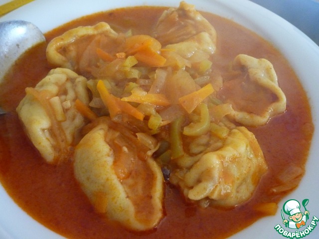 Универсальное сочетание тесто-мясо. Близкие родственники пельменей, разница в форме и в овощном соусе, который делает их сочными и наимягчайшими. Отличное блюдо для зимних холодов! Попробуйте, надеюсь вам понравится!!!