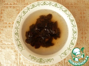 Хорошо вымойте под проточной водой чернослив, порежьте его на небольшие кусочки и залейте на 5 минут кипятком.