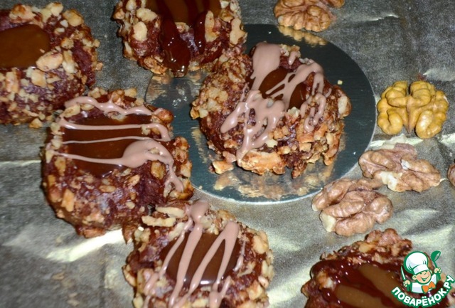 Рецепт «Шоколадно-ореховое печенье с карамельным соусом»: