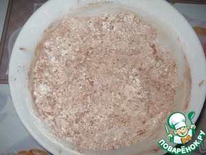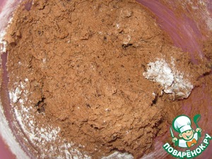 Подмешайте мучную смесь, добавьте шоколад, всё перемешайте.