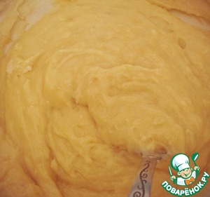 • Бананы разминаем вилкой, добавляем яйца, сахар, ванильный сахар, масло и перемешиваем до однородной массы.