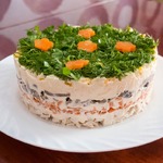 Только пришлось добавить в салат слой картошки - слишком много отварила для оливье, не знала куда ее деть