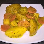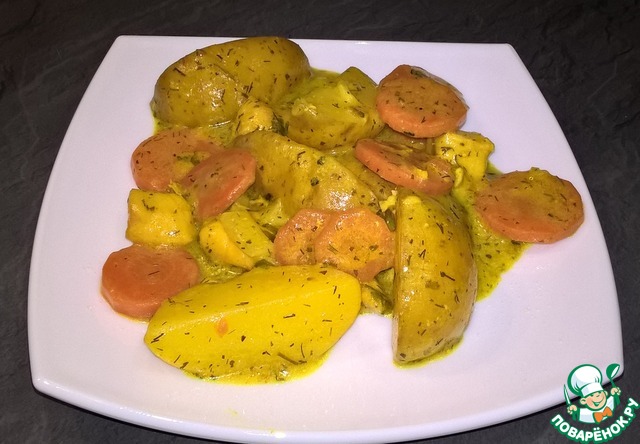 Картофель я приготовила в мультиварке, это очень удобно. Картофель вкусный и рассыпчатый. В соус я добавила для вкуса и цвета куркуму. Её добавляю много куда.