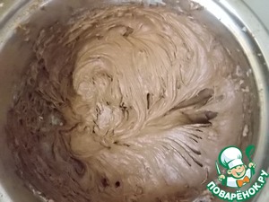 Затем в эту массу добавить ванилин, муку, разрыхлитель и какао. Все хорошенько взбить.