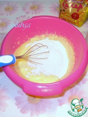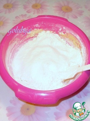 Небольшими порциями начинаем подсыпать просеянную муку.