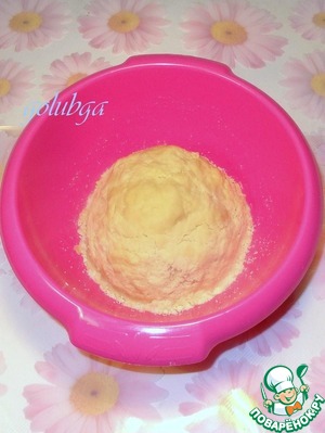 Замешиваем мягкое песочное тесто. Оно должно собраться в комок.