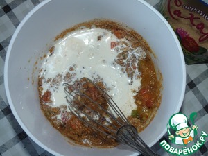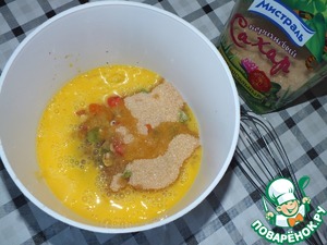 В сухую смесь добавить растопленное масло и яйца. Перемешать.