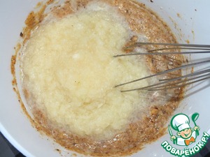Груши очистить, натереть на терке (или просто измельчить в блендере в пюре). Добавить в смесь. Все хорошо вымешать венчиком
