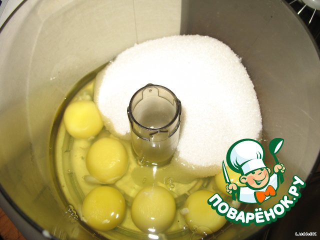 6 яиц разбить, добавить сахарный песок