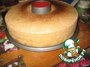 Пока яйца с сахаром взбиваются. Муку просеиваем через сито и добавляем разрыхлитель. Муку аккуратно примешиваем к взбитым яйцам. Тесто должно получится консистенции густой сметаны.