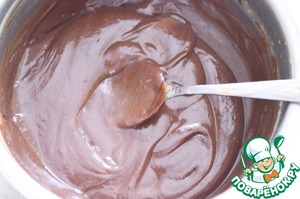 5. Затем снять с огня, добавить поломанный шоколад и размешать, чтобы шоколад растаял. Крем остудить.