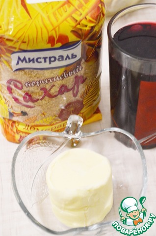 В ковше или кастрюле смешать сок, сахар и масло и нагреть до растворения сахара. -