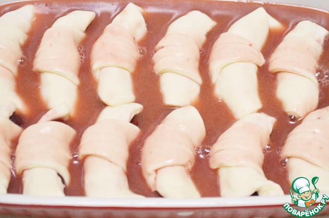 3. Залить рогалики полученным соусом. Они должны быть покрыты на половину.