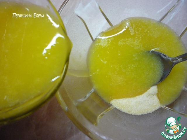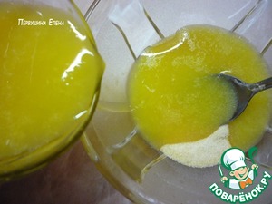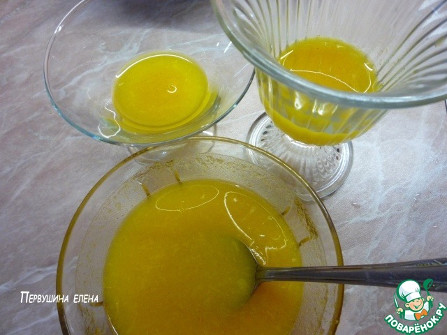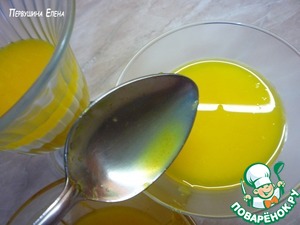 По истечении указанного времени апельсиновый сок с разбухшим желатином подогреваем, чтобы он растворился полностью (не кипятить!).