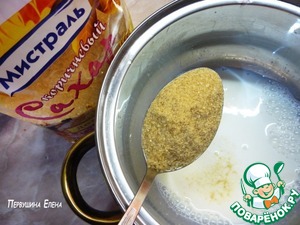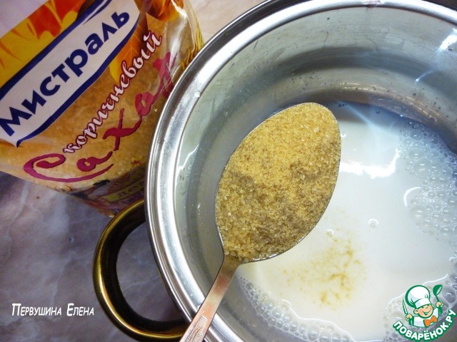 Так же нагреваем молоко до растворения желатина. И кладем в него коричневый сахар.