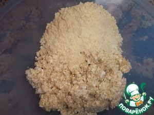 Аккуратно перемешиваем, чтобы получилась влажная крошка.