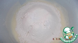 Всыпать 2 стакана просеянной муки, соду.