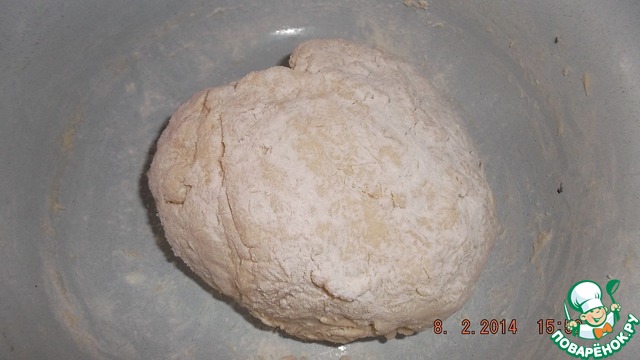 Замесить мягкое тесто. Подсыпая по мере необходимости муку. Тесто не должно стать твердым. И, накрыв его полотенцем, отставить в сторону минут на 30.