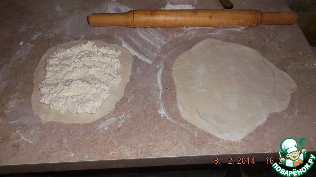 Раскатываем 2 тонкие лепешки. Тесто раскатывается легко.