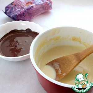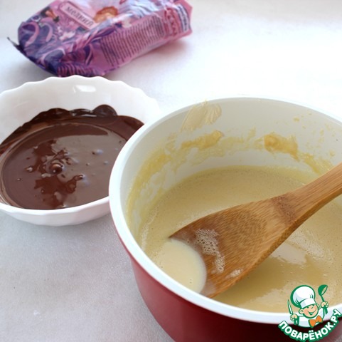 Растопите шоколад в микроволновке или на водяной бане, добавьте к массе.