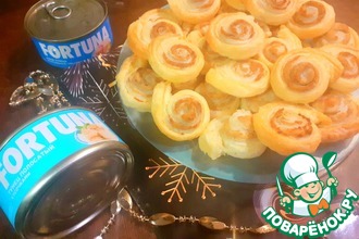 • Разложите слоечки на противень, застеленный бумагой для выпечки.