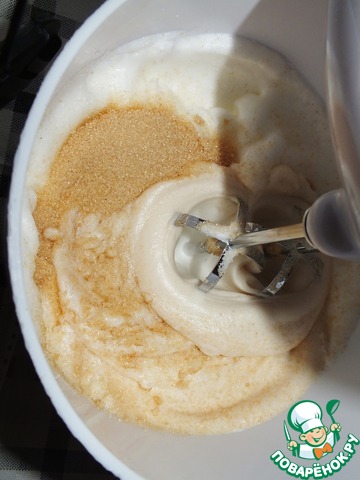 Аккуратно порциями добавляем коричневый сахар. Я взяла сахар Демерара fine от Мистраль, так как он мелкий и ароматный.