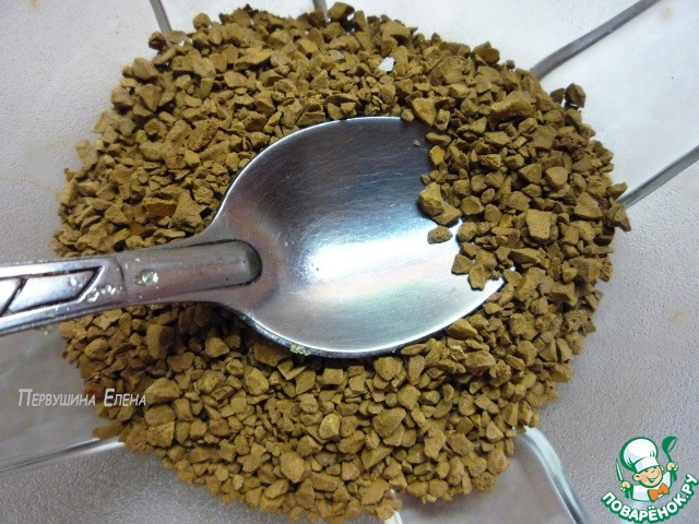 - Кофе растворимый (с горкой – 3 ч.л. для теста + 2 ч.л. для глазури) — 5 ч. л.