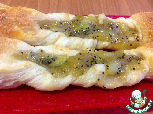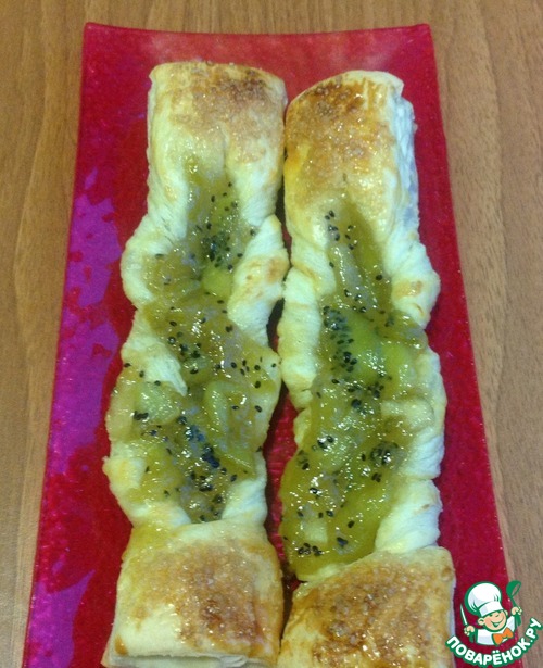 Я еще не видела здесь слоек с киви да и такой формовки пока тут тоже не предлагали
