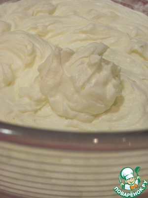 В разъемную форму с готовым коржом выложить творожно-сливочный крем. Поставить форму в холодильник на 1 час, до того момента, пока крем застынет.