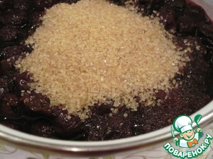 Вишню положить в кастрюлю. Вишня должна дать сок, который выделился после того, как удалили косточки.