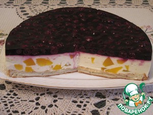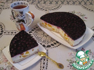 Очень вкусный десерт с коржом из слоеного теста, с заварным и творожно-сливочным кремом, персиками, с вишнево-желатиновой заливкой. Попробовав раз, Вы захотите готовить его снова и снова для себя и друзей, на праздники и в будни. Нежность крема с кусочками персика покорит Вас, кислинка вишни сделает вкус необычным. Все вместе - это незабываемый праздник вкуса.