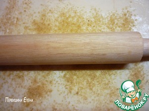 Присыпать коричневым сахаром тесто и пройтись скалкой по всей поверхности теста, слегка вдавливая сахар.