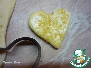 Формочкой в виде сердца вырезать несколько фигурок - это будущие лепестки.