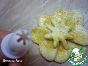 Желательно делать сразу на противне, застланным бумагой для выпечки. Со второго цветка я так и стала делать.