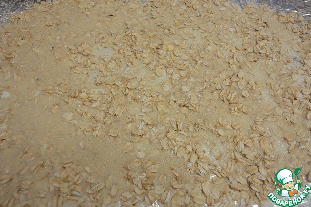 Хлопья высыпать на противень, застеленный фольгой, сверху посыпать сахаром.