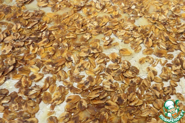 Готовить 5 минут, пока хлопья не покроются карамельной корочкой. Остудить и разломать на маленькие кусочки.