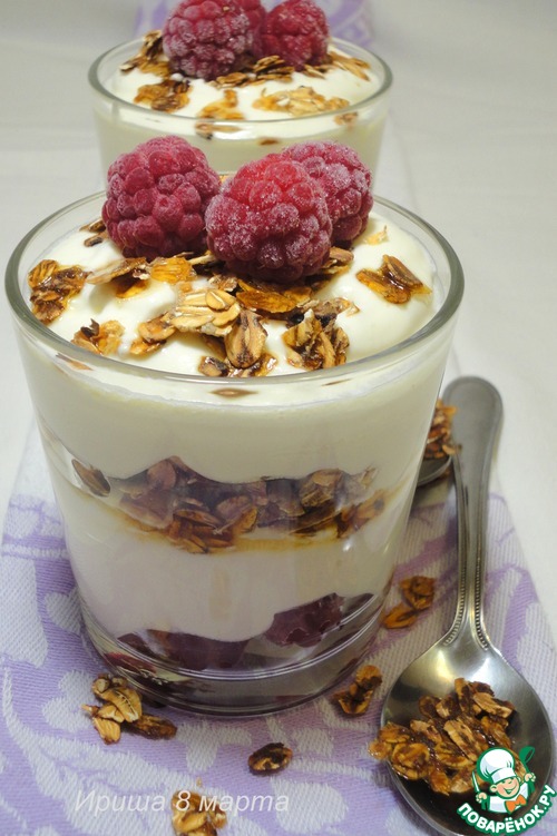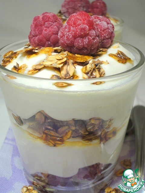 Нежный, лёгкий, сливочный с хрустящими хлопьями десерт понравится и взрослым, и детям. Очень прост и быстр в приготовлении.