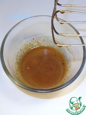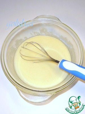 Добавляем в яичную смесь растопленный и остывший маргарин, смешиваем.