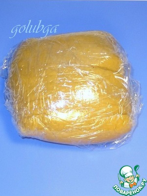 Заворачиваем в пищевую плёнку и убираем на 1-2 часа в холодильник. Я положила тесто в морозилку на 20 минут, а затем переложила в холодильник, с таким тестом можно работать.