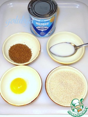 Для украшения нам надо: растворимый кофе, молоко, сгущённое молоко, кунжутное семя (4 ст. л.).