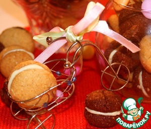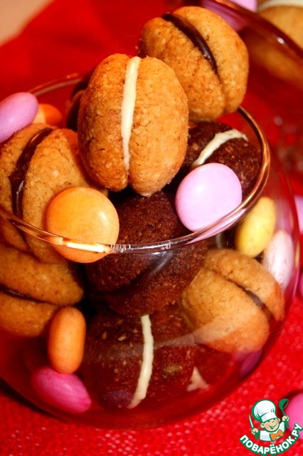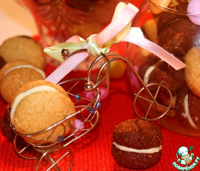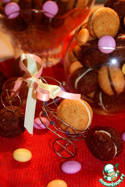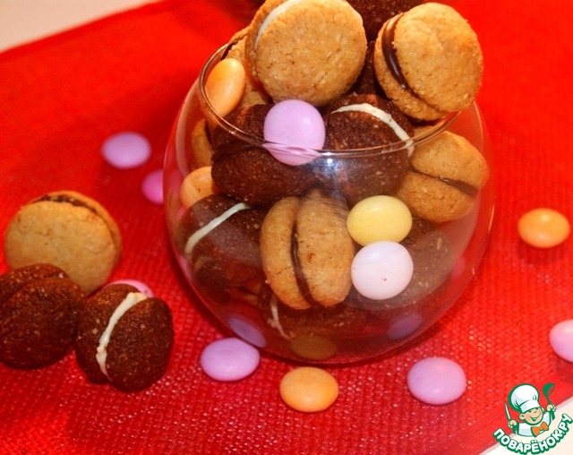 Нежное, буквально, на один укус, миндальное печенье с шоколадной прослойкой, просто тает во рту и только протяжное и восхищенное ммм... дает понять, как оно прекрасно.