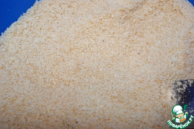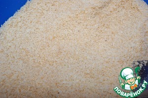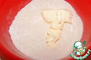 Смешать сахар 100 г, миндаль 100 г и муку 110 г, добавить масло и хорошо перемешать.